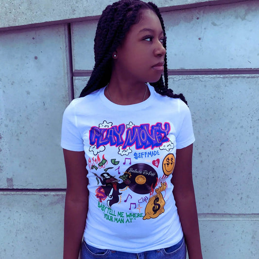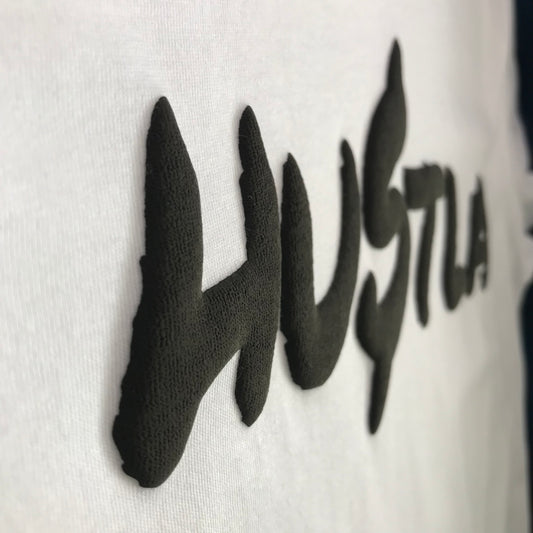 Hustla -Unisex White & Black T-shirt 3D Puff Letters